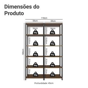 - Duas estantes multiuso com cinco prateleiras em cada