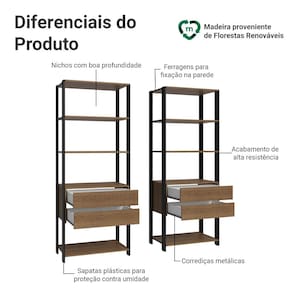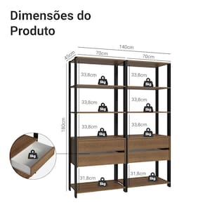 - Duas (2) Estantes abertas de 70 cm com duas (2) gavetas e quatro (4) prateleiras cada
