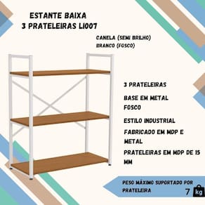 Compacta, moderna e versátil! Esta estante baixa com 3 prateleiras suporta até 7 kg por nível e combina a resistência do MDP com uma base de metal com Acabamento Fosco. Sua pintura touch garante um acabamento sofisticado e suave ao toque, ideal para organizar livros, objetos decorativos e muito mais com estilo e praticidade. Este móvel chegará em sua casa separado em 01 volume.