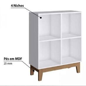Estante Baixa BY150 Completa Móveis para decorar o quarto infanto juvenil A Estante 4 nichos BY 150 da Completa Móveis apresenta um visual clássico e atemporal que vai organizar de forma prática e bonita o quarto infantil. Com amplo espaço de armazenamento, auxilia na organização do ambiente e também na decoração. Aproveite este espaço também para decorar com objetos coloridos e lúdicos que estimulam a imaginação das crianças. Produzida em MDP 15 mm com acabamento fosco e pés em MDF 25 mm. Esse produto pode ser associado a outros da Linha BY, todos vendidos separadamente. MDF Trata-se de um painel de madeira reconstituída, produzido por meio da aglutinação de fibras de madeira com resinas sintéticas e aditivos. As placas de madeira são coladas umas sobre as outras com resina, e fixadas através de pressão. Empregado em partes aparentes dos móveis, onde serão aplicados acabamentos finais. Uma madeira que permite mais criatividade no design dos móveis, por isso, é indicado em peças que terão partes arredondadas e contornos. O material também é recomendado em casos de usinagem em baixo relevo e entalhamento. MDP boa estabilidade e grande capacidade de absorção de tinta, o que assegura excelente acabamento em caso de pinturas e revestimentos. O material é produzido em três camadas: uma grossa no miolo e duas finas nas superfícies, todas com grande uniformidade das partículas. Suas características mecânicas superiores às de materiais similares, conferem mais resistência no arrancamento de parafusos, por exemplo, e redução de empenamentos.