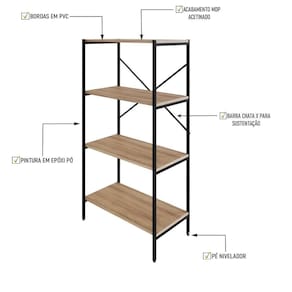 Estante C/04 Prateleiras 118x60x33cm Tub Tueh1164 Lâmina Mel - Lâmina Mel / Sobre o ProdutoEstante C/04 Prateleiras 118x60x33cm Tub TUEH1164 Branco Chess - Est.PretaDescrição do Produto:A Estante Tub TUEH1164 combina o estilo industrial contemporâneo com funcionalidade. Feita com estrutura tubular de aço com pintura epóxi, garante durabilidade e resistência, enquanto as prateleiras em MDP acetinado com bordas em PVC oferecem maior proteção e fácil manutenção. O design inclui barras chatas em formato X para maior sustentação e estabilidade, além de pés niveladores que asseguram o perfeito ajuste em qualquer superfície. A estante Tub é ideal para organizar e decorar diversos ambientes, como salas, escritórios ou áreas de linha Tub apresenta móveis contemporâneos com um toque de estilo industrial, ideais para sala, home office, cozinha ou área de lazer. Com estrutura em tubos de aço robustos e acabamento em pintura epóxi, cada peça oferece durabilidade e resistência. O MDP Perffect com tecnologia Microban garante proteção contra fungos e bactérias, enquanto as fitas em PVC asseguram um acabamento superior. Essa coleção é a combinação perfeita entre funcionalidade e design moderno para seu Inclusos:1 EstanteDimensões dos Produtos:Estante C/04 Prateleiras 118x60x33cm Tub TUEH1164 Branco Chess - 60 x 33 x 118 cmInformações Logísticas (Comp. X Prof. X Alt.) 118 x 34,5 x 10 cm - Peso: 10,4497 KgPeso Total: 10,4497 KgObservações:Não acompanha acessórios decorativos. Imagens meramente ilustrativas.Informações Técnicas / Características:- Cor do Produto: Branco Chess - Cor do Predominante: Branco- Marca: Compace- Modelo: TUEH1164- Linha: Tub- Material: Mdp- Material da Estrutura / Pés: Aço- Acabamento: Perffect Acetinado- Escala de Brilho: Fosco- Fita de Borda: Pvc - Possui Prateleiras: 4- Peso Máximo por Prateleira: 10kg- Possui Pés: 2- Pés Niveladores: Sim - Acabamento Estrutura: Epóxi-Pó- Formato: Retangular - Suporta Até (kg): 40kg- Comprimento: 60cm- Profundidade: 33cm- Altura: 118cm - Peso Lí.: 9,76Kg- Recomendações de Uso, Manutenção e Limpeza: Para a limpeza, utilize flanela seca ou pano macio levemente umedecido em água. Utilize um pano seco em seguida. Evite com produtos químicos (solventes, thinner, acetona, etc) e não utilize nenhum tipo de esponja de aço.- Necessita de Montagem: Sim / Acompanha Manual de Montagem- Complexidade da Montagem: Média: pode ser montado por mais de uma pessoa e/ou necessite de maior conhecimento para montagem.- Garantia: 6 meses Tipo de Garantia: Garantia do Fabricante | Duração de Garantia: 6 Meses | Montagem: Necessita Montagem | Material: Madeira,Metal | País de Origem: | Comprimento: 60 | Altura: 118 | Largura: 33 | Profundidade: 33 | Tonalidade: Multicolorido | Cor: Multicolorido | Produto: Estante | Marca: Compace | Coleção: Industrial | Requer Baterias: Não | Certificação Externa: Não aplicável | Componentes inclusos: Manual de montagem e kit acessórios | Peso: 9,76 | Preço de tabela: 258.16300000000001 | Fabricante: Compace | do Modelo: TUEH1164 | de Caixas: 1 | de Itens: 1 | da Peça: TUEH1164 | Cômodo indicado: Escritórios | Material da Estrutura: Aço | Quantidade de itens: 1 | Principais Características do Produto 0: Aço | Palavras-chave de Pesquisa: Não Aplicável | Principais Características do Produto 1: MDP | Principais Características do Produto 2: Pvc | Exige montagem: true | Peso do item: unit=kilograms; | Dimensões do item P x L x A: depth#value=33;width#value=60;depth#unit=centimeters;width#unit=centimeters;height#value=118;height#unit=centimeters Cor: Lâmina Mel /