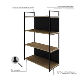 Estante C/04 Prateleiras 118x80x33cm C/fundo Yon Vermont Oak/ Vermont Oak/