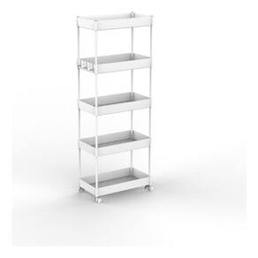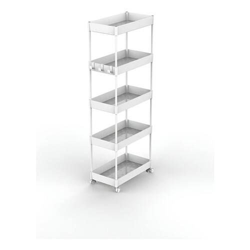 Organize e otimize seu espaco com a Estante Carrinho Multiuso com Rodas de 5 Niveis na cor Branco. Este versatil movel auxiliar e uma solucao pratica e funcional para armazenar e organizar uma variedade de itens, seja em sua casa ou escritorio. Com dimensoes de 108x40x22cm, e compacto o suficiente para caber em espacos pequenos, mas generoso em termos de capacidade de armazenamento, com seus cinco niveis de prateleiras.