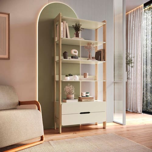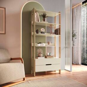 Leveza, funcionalidade e um design que se adapta a qualquer ambiente. A Estante Elvis é o equilíbrio perfeito entre praticidade e estética, oferecendo quatro prateleiras amplas para expor livros, plantas e objetos decorativos, além de duas gavetas inferiores para manter tudo organizado. Seus cantos arredondados trazem um toque suave e moderno, enquanto sua estrutura robusta, produzida 100% em MDF de 1,5cm com acabamento BP, garante resistência e durabilidade. Fácil de limpar e de montar, ela se encaixa perfeitamente em salas, escritórios, quartos e até mesmo cozinhas, tornando qualquer espaço mais elegante e bem aproveitado. Produto Montado: Sim Acabamento da Gaveta: Melamínico Acabamento da Prateleira: Melamínico Acabamento dos Pés: Melamínico Altura dos Pés: 12 cm Altura Máxima dos Pés: 12.0000 Ambiente Principal: Sala de Estar codigo_ean: 7901008601202 Complexidade da Montagem: Média: pode ser montado por mais de uma pessoa e/ou necessite de maior conhecimento para montagem Cor: Off White / Carvalho Cor do Produto: Off White / Carvalho Cor Flex: Não Cor Interna: Branco Escala de Brilho: Fosco Escala de Brilho da Gaveta: Fosco Escala de Brilho da Prateleira: Fosco Gaveta com Chave: Não Itens Inclusos: 1 Estante, Kit Ferragens e Manual de Montagem Linha ou Coleção: Elvis Manual de Montagem e Instalação: https://product-hub-prd.madeiramadeira.com.br/275943468/documents/11bfaae6-bdbe-4717-8fa1-57ba92dfac6e494dbb9dac813652e487981441.pdf Marca: FD Material da Gaveta: MDF Material da Prateleira: MDF Material dos Pés: MDF Material Principal: MDF Montagem Flex: Não Necessita Montagem: Sim Origem do Produto: Nacional Peso: 40,3 kg Peso Máximo por Gaveta: 5 kg Peso Máximo por Prateleira: 6 kg Possui Acabamento na Parte de Trás: Não Possui Espelho: Não Possui iluminação: Não Possui Pés: 04 Possui Portas: Não Possui Prateleiras: Sim Possui Rodízio: Não Possui Vidro: Não Quantidade de Gavetas: 02 Gavetas Recomendações de Uso, Manutenção e Limpeza: Limpar somente com um pano levemente umedecido. Indicado para ambientes internos Sapatas Niveladoras: Não Sistema de Montagem: Parafusos, cavilhas e minifix Suporta Até (kg): 34 kg Tipo de Corrediça da Gaveta: Metálica Telescópica Tipo de Puxador da Gaveta: Embutido