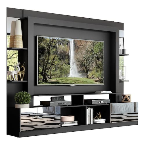 MDPO Rack Estante com Painel TV 65" e Espelho Oslo Multimóveis é perfeito para você deixar seu ambiente organizado e muito bem decorado. Produzido em MDP, que garante maior durabilidade e facilidade na limpeza, além de um acabamento superior, possui 2 portas articuladas com um excelente espaço interno para organizar seus pertences, prateleiras para que você possa personalizar a decoração e nichos para acomodar todos os equipamentos. Os detalhes com espelhos nas portas e prateleiras deixam o móvel mais requintado, criando um ambiente moderno e charmoso. Os espelhos são de vidro (o que evita que a imagem fique distorcida) e lapidados, ou seja, passam por um processo para que as bordas não fiquem cortantes, o que garante maior segurança. O painel para TV de até 65 (suporta até 30kg) possui espaçamento para passagem dos fios, que permite deixar os cabos mais organizados. Uma sala de estar moderna, aconchegante e linda para receber os amigos e curtir os melhores filmes e séries.