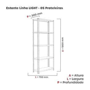 Uma estante com estrutura de aço é uma opção moderna e durável para organizar seus pertences. O aço confere resistência e estabilidade, tornando-a ideal para armazenar livros, objetos decorativos, materiais de escritório e muito mais. Além disso, a estética do aço pode dar um toque contemporâneo ao ambiente. A versatilidade desse material permite que a estante se encaixe em diversos estilos de decoração, do industrial ao minimalista. Acabamento da Prateleira: Pintura Complexidade da Montagem: Baixa: pode ser montado por uma pessoa sozinha Cor: Verde Miró Cor do Produto: Verde miró Cor Interna: Verde miró Escala de Brilho: Semi-Fosco Escala de Brilho da Prateleira: Semi-Fosco Itens Inclusos: uma estante Manual de Montagem e Instalação: https://product-hub-prd.madeiramadeira.com.br/901814/documents/9d4b8b84-b8ec-4d20-ae98-7efc83a4c81f454Estante2020Linha20Light.pdf Material da Prateleira: Aço Material dos Pés: Polipropileno Material Principal: Aço Necessita Montagem: Sim Origem do Produto: Nacional Peso: 7,7291 kg Peso Máximo por Prateleira: 15 kg Possui Espelho: Não Possui Possui iluminação: Não Possui Pés: 04 Possui Portas: Não Possui Prateleiras: 05 Possui Rodízio: Não Recomendações de Uso, Manutenção e Limpeza: Limpeza deve ser feita com um pano levemente umedecido e um pano seco. Sapatas Niveladoras: Não Sistema de Montagem: Parafuso Suporta Até (kg): 15 kg