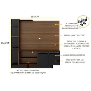 Produzida em MDP com pintura UV, que garante maior durabilidade e resistência, possui painel para TV até 55 com espaçamento para a passagem dos fios, o que deixa um visual mais clean e os cabos organizados. Possui prateleiras que podem ser utilizadas para artigos decorativos e/ou equipamentos e 2 portas com um amplo espaço interno para manter seus pertences organizados.