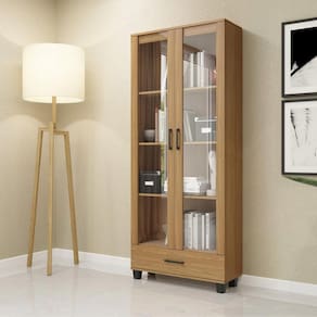 A estante é fabricada em 100% MDF e apresenta portas de vidro de abrir, 4 prateleiras e 1 gaveta. Esse móvel é ideal para exibir e armazenar objetos decorativos, louças, cristais e muito mais. Com suas portas de vidro, permite que você mantenha seus itens protegidos contra poeira e sujeira, ao mesmo tempo em que os exibe de forma elegante. A presença da gaveta oferece espaço adicional para guardar pequenos objetos. Além disso, o uso do MDF confere durabilidade e qualidade ao móvel. É uma excelente opção para adicionar charme e organização à sua casa.