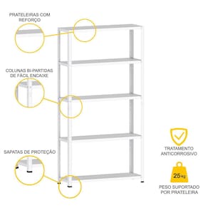 ESTANTE DE AÇO 175X92X30 5 PRAT. C/ REFORÇO PANDIN - BRANCO