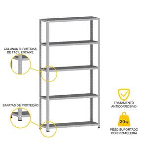 ESTANTE DE AÇO 175X92X30 5 PRAT. PANDIN - CINZA