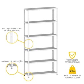 ESTANTE DE AÇO 175X92X30 6 PRAT. PANDIN - BRANCO