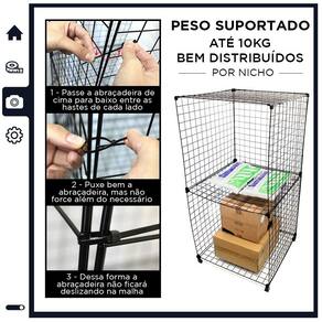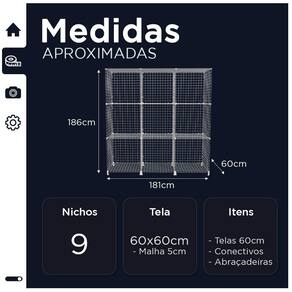 CARACTERÍSTICAS: - Cor: Branco - Material: Aço - Tela aramada com malha de espaços de 5 cm - Medidas do Nicho: 60 x 60 x 60 cm - Distância do Chão: 5cm - Suporta aproximadamente 10kg bem distribuídos por nicho