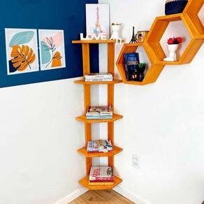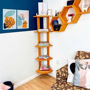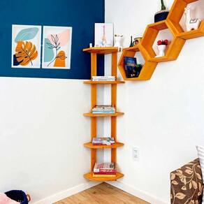 Todo canto da sua casa é perfeito para uma decoração legal e transformadora. Por isso existe a estante cantoneira, para aproveitar cada cantinho.