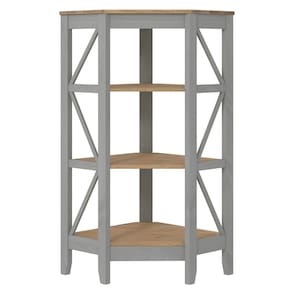 - Acabamento: Cera cor cinza lavado com veios e nós aparentes | Tampo e prateleiras: Cera cor marrom antique.
