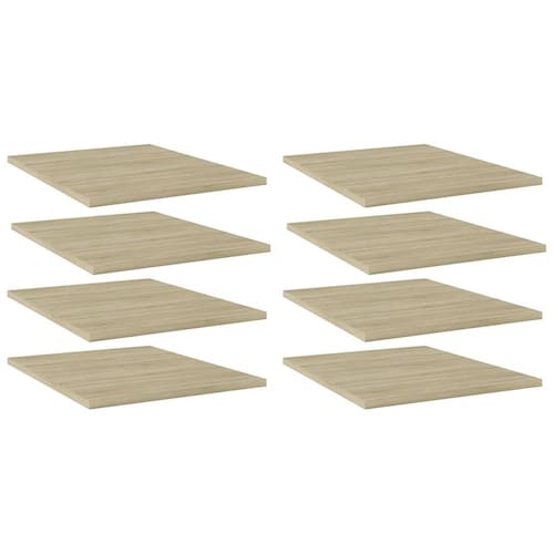 - Número de itens: 8- - Cor: bege- - Forma: retangular- - Material: madeira de engenharia- - Acabamento: fosco- - Interior/externo: somente interno- - Capa incluída: Não- - Sala: Biblioteca- - Capacidade: ótima para armazenamento extra- - Montagem incluída: Sim- - Dimensões: 19,7 x 15,7 x 0,6 polegadas (L x C x A) - - Altura da superfície: 0,6 pol. - Peso: 39,7 lb- - Escada: Não- - Marca: vidaXL- - A entrega contém: 8 x placa de estante- - Montagem necessária: Não- - SKU: 805193- - EAN: 8720290000000.000000000-