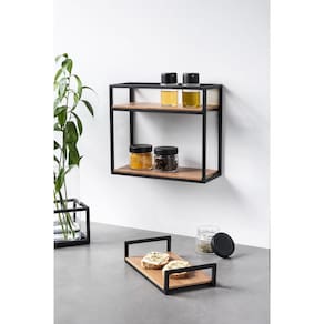 Seu design geométrico e aberto proporciona praticidade na organização, enquanto valoriza a decoração do espaço. Pode ser utilizada em salas, banheiros, cozinhas, escritórios ou quartos. Fixada diretamente na parede.