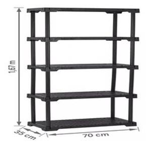 A estante de plástico importada com 5 prateleiras é uma excelente opção para quem precisa de espaço para armazenamento em casa, no escritório ou em ambientes comerciais. Com sua estrutura resistente e durável, esta estante pode suportar uma grande quantidade de peso, tornando-se ideal para armazenar livros, arquivos, materiais de escritório, utensílios domésticos, entre outros.Além de sua robustez, esta estante possui um design moderno e elegante, que se adapta facilmente a qualquer ambiente. Sua cor neutra, geralmente branca ou cinza claro, combina com diversos estilos de decoração, e suas prateleiras espaçosas proporcionam um visual organizado e clean.A estante de plástico importada com 5 prateleiras é fácil de montar e desmontar, permitindo que você a transporte com facilidade e a utilize em diferentes espaços de sua casa ou escritório. O plástico utilizado em sua fabricação é de alta qualidade, garantindo sua durabilidade e resistência ao longo do tempo.Com esta estante, você terá a certeza de que seus objetos estarão seguros e organizados, sem correr o risco de danos ou desorganização. Além disso, sua manutenção é simples e prática, bastando apenas um pano úmido para mantê-la limpa e conservada por muito tempo.Em resumo, se você procura por uma estante prática, resistente e elegante, a estante de plástico importada com 5 prateleiras é a escolha ideal. Com sua qualidade superior e design moderno, ela é perfeita para organizar seu espaço e manter tudo em ordem. Adquira agora mesmo a sua e aproveite todos os benefícios que ela tem a oferecer!Produto Estante MultiusoCômodo Indicado Cozinhas e Áreas de ServiçoMaterial PlásticoTipo de Material PolipropilenoCor PretoTonalidade PretoAltura 167 cmLargura 70 cmProfundidade 35 cmDimensão 167x70x35 cmTamanho GrandeAcompanha Prateleiras Com PrateleirasQuantidade de Prateleiras 5 prateleira(s)Capacidade de Peso da Prateleira 25 KgCor da Prateleira PretoAcompanha Gaveta sem GavetasAcompanha Porta sem PortasAcompanha Rodas sem RodasAcompanha Pés Com PésQuantidade de Pés 4 pé(s)Material dos Pés PlásticoProduto Acompanha Embalagem SimTipo de Embalagem SacoMarca GrifitLinha PolyReferência do Produto POLY 4Montagem DesmontadoTempo Estimado de Montagem 20 minInstruções de Montagem Apenas encaixar as peças.Complexidade de Montagem Baixa: pode ser montado por uma pessoa leiga
