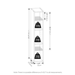 - Dimensões do produto: 9,29 (P) x 5,91 (L) x 31,5 (A) polegadas