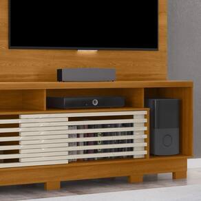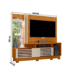 Estante De Tv 60 Pol 200cm Com Pé Sala De Estar Lumari M20 - D'rossi Cumaru A Estante de TV 60 Pol Lumari é a escolha ideal para quem deseja aliar design contemporâneo, organização e sofisticação na Sala de Estar. Com 200 cm de largura, este móvel foi desenvolvido para acomodar TVs de até 60 polegadas, oferecendo elegância e funcionalidade em cada detalhe. O destaque fica por conta das portas ripadas deslizantes, que agregam charme ao visual e otimizam o espaço. As prateleiras de vidro e espelhos integrados conferem profundidade e modernidade, enquanto a iluminação em LED embutida cria uma atmosfera aconchegante e sofisticada. Produzida com chapas em MDP de alta resistência e tampo de 40mm, a estrutura garante durabilidade e suporte firme para sua TV e itens decorativos. Os pés reforçam a estabilidade do móvel e facilitam a limpeza, elevando a funcionalidade do produto. Um verdadeiro painel multifuncional que transforma o ambiente com estilo e praticidade. Dimensões do Produto: Altura: 183 cm Largura: 200 cm Profundidade: 46 cm Peso: 82 kg Características do Produto: Material da Estrutura: MDP Espessuras das Chapas: 15mm/25mm/40mm Peso Suportado: 156 Kg Distribuídos Acabamento: Pintura UV Escala de Brilho: Brilho/Fosco Suporta TV de até: 60 Polegadas Possui Prateleiras: Sim Quantidade de Prateleiras: 3 prateleiras, sendo 1 em MDP e 2 em Vidro Material das Prateleiras: Vidro/MDP Possui Portas: Sim Quantidade de Portas: 2 Portas Tipo Porta: Deslizante Possui Nichos: Sm Quantidade de Nichos: 2 Nichos Possui Gavetas: Não possui Possui Puxador: Sim Material do Puxador: Poliestireno Possui Espelho: Sim Quantidade de Espelhos: 3 Espelhos Possui Pés: Sim Material dos Pés: Poliestireno Possui Luminária de LED: Sim Diferenciais: Design moderno; Portas deslizantes; Prateleiras de vidro. Sistema de montagem: Cavilhas/Parafusos/Minifix Manual de Montagem: Sim Complexidade da Montagem: Alta Montagem: Recomendamos que seja feita por um Garantia: 90 dias contra de fabricação Instruções de Limpeza: Utilizar um pano limpo e levemente úmido Quantidade de Volumes 5 Caixas Medida das Embalagens Caixa 1: 49x41x6cm; Caixa 2: 159x39x9cm; Caixa 3: 159x46x10cm; Caixa 4: 204,5x46x7,5cm; Caixa 5: 51,5x10x4cm : É feita somente até o térreo ou portaria. Confira sempre as medidas das embalagens para assegurar que o produto passe por portas e escadas do .