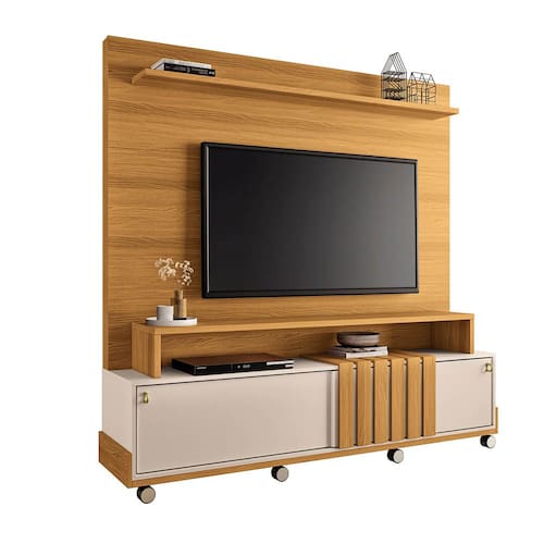 A Estante de TV 65 Pol 180cm 2 Portas Helen é a escolha ideal para compor sua sala de estar, trazendo beleza e exclusividade. Com um painel para TV que suporta até 65 polegadas, a estante apresenta duas portas de correr com trilho em alumínio, proporcionando uma flexibilidade suave e silenciosa, além de um design moderno e funcional. Os puxadores em poliestireno possuem um formato exclusivo e acabamento em cor dourada, conferindo um toque de sofisticação ao móvel. O detalhe ripado na parte frontal da estante é um charme à parte que enriquece ainda mais o móvel. O tampo e a prateleira superior possuem espessura de 25mm, garantindo maior resistência e durabilidade ao produto. Além disso, conta com um nicho amplo, ideal para aparelhos eletrônicos ou itens decorativos. Seus rodízios cromados de 50mm facilitam tanto a movimentação quanto a limpeza. O móvel é fabricado em MDP e MDF de 25mm e 15mm, materiais de alta qualidade e ecologicamente corretos, garantindo durabilidade e sustentabilidade. Esta estante foi pensada para o seu lar. Aproveite!
