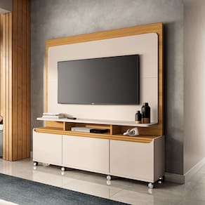 A Estante para TV 70 Pol 180 cm Mabel Cinamomo/Off White da HB Móveis foi projetada com um estilo moderno e sofisticado, que traz elegância e inovação para o seu espaço. Fabricada com materiais de alta qualidade, como MDP e MDF de 25mm e 15mm, assegura resistência e longa durabilidade. Seu tampo de 25mm oferece estabilidade para TVs de até 70"", podendo também ser fixada no painel, enquanto o detalhe canelado na parte inferior confere um toque único e diferenciado. A estante apresenta um layout funcional, com duas portas passantes que não necessitam de puxadores, garantindo um visual moderno. As portas possuem dobradiças laterais de excelente qualidade, proporcionando um fechamento suave. Além disso, conta com uma gaveta equipada com corrediças telescópicas, oferecendo abertura e fechamento eficientes para armazenamento. Outro ponto de destaque são os pés cromados com rodízios de 50mm, que conferem mobilidade e facilitam a limpeza. A combinação de design moderno e funcionalidade faz desta estante uma excelente escolha para quem busca um produto prático, elegante e que contribui para a organização da Sala de Estar. Adicione ao seu carrinho e aproveite para garantir a sua agora mesmo!
