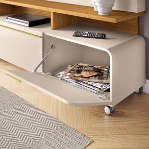 A Estante de TV 70 Pol 200 cm Ripado Jane é a escolha ideal para compor sua sala de estar, trazendo beleza e exclusividade. Ela foi produzida em MDP e MDF de 25mm e 15mm, materiais de alta qualidade e ecologicamente corretos. Além de um design moderno e funcional a estante conta com; um painel para TV que suporta até 50 polegadas, a estante apresenta tampo e a prateleira superior com espessura de 25mm garantindo maior resistência e durabilidade ao produto, o detalhe ripado na frente é um charme à parte. Possui portas laterais basculantes com dobradiças metálicas e pistão a gás, que abrem e fecham suavemente proporcionando uma flexibilidade silenciosa. Conta também com gaveta central com corrediças telescópicas, que facilitam a abertura e o fechamento e puxadores metálicos em tom dourado conferindo um toque de sofisticação ao móvel. Seus rodízios cromados de 50mm facilitam tanto a movimentação quanto a limpeza. Esta estante foi pensada para o seu lar. Aproveite!