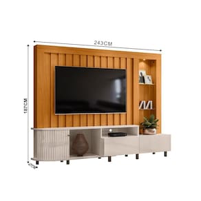 Estante De Tv 70 Pol 243cm Ripado Sala De Estar Nivora Cinamomo/off White M20 - D'rossi A Estante de TV Nivora na cor Cinamomo/Off White é a opção perfeita para quem deseja unir design contemporâneo, organização inteligente e acabamento sofisticado na Sala de Estar. Com largura de 243cm, o móvel suporta TVs de até 70 polegadas, transformando o ambiente em um espaço elegante e funcional. Produzida com chapas em MDP de 15mm e 25mm, oferece excelente durabilidade e resistência ao longo do tempo. O destaque fica por conta da porta deslizante flexível em MDF, com design curvo exclusivo, que proporciona um visual diferenciado e otimiza o uso do espaço. A iluminação LED integrada valoriza objetos decorativos e cria uma atmosfera aconchegante. As prateleiras de vidro de 5mm adicionam leveza e requinte, enquanto o nicho central é ideal para aparelhos eletrônicos. Para completar, o móvel conta com duas gavetas com corrediças telescópicas, que garantem organização prática e eficiente. Os pés em poliestireno garantem estabilidade e ainda contribuem para a praticidade na hora da limpeza. O puxador em tom cromado, por sua vez, acrescenta um toque de sofisticação ao design. Dimensões do Produto: Altura: 187 cm Largura: 243 cm Profundidade: 47 cm Peso: 98 kg Características do Produto: Material da Estrutura: MDP e MDF Espessuras das Chapas: 15mm/25mm Peso Suportado: 43 Kg Distribuídos Acabamento: Pintura UV Escala de Brilho: Brilho/Fosco Suporta TV de até: 70 Polegadas Possui Prateleiras: Sim Quantidade de Prateleiras: 2 Prateleiras Material das Prateleiras: Vidro 5mm Possui Portas: Sim Quantidade de Portas: 1 Porta Material da Porta: MDF Tipo Porta: Deslizante Possui Nichos: Sim Quantidade de Nichos: 1 Nicho Possui Gavetas: Sim Quantidade de Gavetas: 2 Gavetas Material das Corrediças: Telescópicas Possui Puxador: Sim Quantidade de Puxador: 1 Puxador Material do Puxador: Poliestireno cromado Possui Pés: Sim Material dos Pés: Poliestireno Possui Luminária de LED: Sim Possui Espelho: Não possui Possui Rodízios: Não possui Diferenciais: Design moderno; Detalhes curvos no tampo e na base; Porta deslizante flexível, Painel com detalhe ripado. Sistema de montagem: Cavilhas/Parafusos/Minifix Manual de Montagem: Sim Complexidade da Montagem: Alta Montagem: Recomendamos que seja feita por um profissional Garantia: 90 dias contra defeito de fabricação Instruções de Limpeza: Utilizar um pano limpo e levemente úmido Quantidade de Volumes 3 Caixas Medida das Embalagens Caixa 1: 140x49,5x13,7cm; Caixa 2: 183,5x37x10cm; Caixa 3: 240,7x29,5x8,2cm Entrega: É feita somente até o térreo ou portaria. Confira sempre as medidas das embalagens para assegurar que o produto passe por portas e escadas do local.