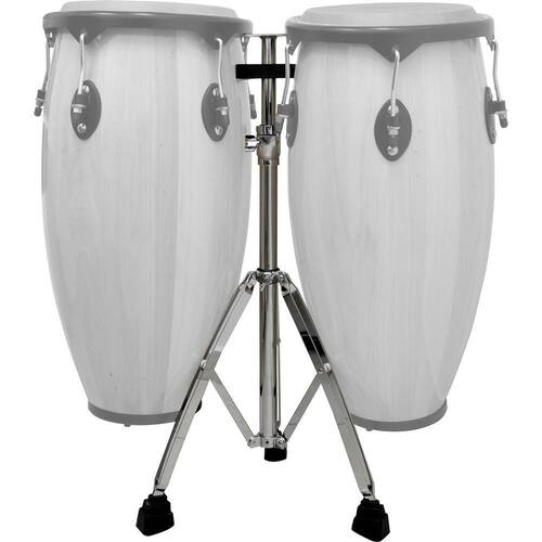 Estante Dupla para Conga New York, ideal para acomodar duas congas evitando que se movam, possui acabamento cromado com ajustes de altura e pés emborrachados.