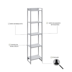 Estante Dynamica 45x30x187cm C/05 Prateleiras Branco Chess / Branco Chess / Sobre o ProdutoEstante Dynamica 45X30X187cm C/05 Prateleiras Carvalho / Est.BrancaDescrição do Produto:A Estante Dynamica DYES45 é um produto prático e versátil, que pode ser utilizado em diversos ambientes, como quarto e escritório, na sala, cozinha ou seu depósito, podendo ser em diversas combinações com os demais módulos da Linha Dynamica reúne design minimalista e praticidade, traços retos e móveis versáteis são as características dessa coleção. As estruturas metálicas possuem pintura Epóxi e sapatas niveladoras e, nos tampos, MDP Perffect Acetinado com fitas de borda em PVC. Itens Inclusos:1 EstanteDimensões dos Produtos:Estante Dynamica 45X30X187cm C/05 Prateleiras Carvalho / 45 x 30 x 187 cmInformações Logísticas (Comp. X Prof. X Alt.) 186 x 31 x 10 cm - Peso: 11,316 KgPeso Total: 11,316 KgObservações:Não acompanha acessórios decorativos. Imagens meramente ilustrativas.Informações Técnicas / Características:- Cor do Produto: Carvalho / Cor do Predominante: Branco- Marca: Compace- Modelo: DYES45- Linha: Dynamica- Material: Mdp- Material da Estrutura / Pés: Aço- Acabamento: Perffect Acetinado- Escala de Brilho: Fosco- Fita de Borda: Pvc- Possui Portas: Não - Possui Prateleiras: 5- Peso Máximo por Prateleira: 08 kg- Possui Pés: 2- Pés Niveladores: Sim - Acabamento Estrutura: Epóxi-Pó Texturizado - Suporta Até (kg): 40 kg- Comprimento: 45cm- Profundidade: 30cm- Altura: 187cm - Peso Lí.: 10,35Kg- Recomendações de Uso, Manutenção e Limpeza: Para a limpeza, utilize flanela seca ou pano macio levemente umedecido em água. Utilize um pano seco em seguida. Evite com produtos químicos (solventes, thinner, acetona, etc) e não utilize nenhum tipo de esponja de aço.- Necessita de Montagem: Sim / Acompanha Manual de Montagem- Complexidade da Montagem: Média: pode ser montado por mais de uma pessoa e/ou necessite de maior conhecimento para montagem.- Garantia: 6 meses Material: Mdp | Acabamento: Perffect Acetinado | Escala de Brilho: Fosco | Fita de Borda: Pvc | Material da Estrutura: Aço | Acabamento da Estrutura: Epóxi-Pó Texturizado | Produto: Estante | Cômodo indicado: Escritórios | Cor: Multicolorido | Tonalidade: Multicolorido | Quantidade de itens: 1 | Principais Características do Produto 0: Aço | do modelo: DYES45 | Certificação de teste externa: Não aplicável | Baterias são necessárias?: false | Palavras-chave de Pesquisa: Não Aplicável | Principais Características do Produto 1: MDP | da peça: DYES45 | de caixas: 1 | Principais Características do Produto 2: Pvc | Componentes incluídos: Manual de montagem e kit acessórios | Exige montagem: true | Fabricante: Compace | Peso do item: unit=kilograms; | Dimensões do item P x L x A: depth#value=30;width#value=45;depth#unit=centimeters;width#unit=centimeters;height#value=187;height#unit=centimeters Cor: Branco Chess /