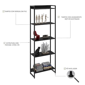 Estante Dynamica 60x30x187cm C/05 Prateleiras Preto ônix / Preto ônix /