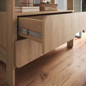 Estante Elvis com 2 Gavetas 100% Leveza, funcionalidade e um design que se adapta a qualquer ambiente. A Estante Elvis é o equilíbrio perfeito entre praticidade e estética, oferecendo quatro prateleiras amplas para expor livros, plantas e objetos decorativos, além de duas gavetas inferiores para manter tudo organizado. Seus cantos arredondados trazem um toque suave e moderno, enquanto sua estrutura robusta, produzida 100% em MDF de 1,5cm com acabamento BP, garante resistência e durabilidade. Fácil de limpar e de montar, ela se encaixa perfeitamente em salas, escritórios, quartos e até mesmo cozinhas, tornando qualquer espaço mais elegante e bem aproveitado. Produto Montado: Sim Acabamento da Gaveta: Melamínico Acabamento da Prateleira: Melamínico Acabamento dos Pés: Melamínico Altura dos Pés: 12 cm Altura Máxima dos Pés: 12.0000 Ambiente Principal: Sala de Estar codigo_ean: 7900288116253 Complexidade da Montagem: Média: pode ser montado por mais de uma pessoa e/ou necessite de maior conhecimento para montagem Cor: Louro Freijó Grann Cor do Produto: Louro Freijó Grann Cor Flex: Não Cor Interna: Marrom Escala de Brilho: Fosco Escala de Brilho da Gaveta: Fosco Escala de Brilho da Prateleira: Fosco Gaveta com Chave: Não Itens Inclusos: 1 Estante, Kit de Ferragens e Manual de Montagem Linha ou Coleção: Móveis para sala de estar Manual de Montagem e Instalação: https://product-hub-prd.madeiramadeira.com.br/981447/documents/dd37c0b9-4873-4ecb-8513-f0d6e96b732d2775962579517435164786316.pdf Marca: FD Material da Gaveta: MDF Material da Prateleira: MDF Material dos Pés: MDF Material Principal: MDF Montagem Flex: Não Necessita Montagem: Sim Origem do Produto: Nacional Peso: 40,3 kg Peso Máximo por Gaveta: 5 kg Peso Máximo por Prateleira: 6 kg Possui Acabamento na Parte de Trás: Não Possui Espelho: Não Possui iluminação: Não Possui Pés: 04 Possui Portas: Não Possui Prateleiras: Sim Possui Rodízio: Não Possui Vidro: Não Quantidade de Gavetas: 02 Gavetas Recomendações de Uso, Manutenção e Limpeza: Limpar somente com um pano levemente umedecido. Indicado para ambientes internos Sapatas Niveladoras: Não Sistema de Montagem: Parafusos, cavilhas e minifix Suporta Até (kg): 34 kg Tipo de Corrediça da Gaveta: Metálica Telescópica Tipo de Puxador da Gaveta: Embutido