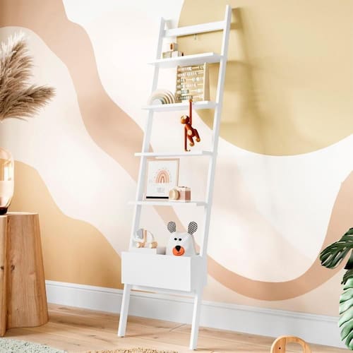 Estante Escada Decorativa Branca Sambalelê é um item que foi desenvolvido com o intuito de decorar o quartinho Sambalelê, pois nela é possível instalar luzinhas e armazenar livrinhos dando assim maior charme ao ambiente.