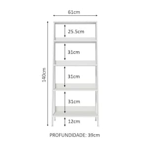 Medidas totais do móvel: 140 cm de altura x 61 cm de largura x 39 cm de profundidade.