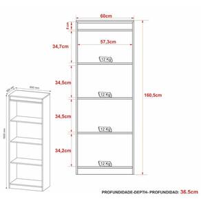 Altura: 160,5cm | Largura: 60cm | Profundidade: 36,5cm