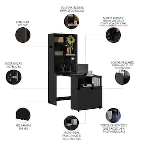 Estante Escrivaninha Com Mesa Bancada Retrátil Salt Preto Z06 - Mpozenato