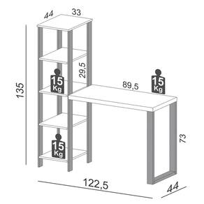 Peso Suportado: 15 Kg no tampo e 15 Kg por prateleira.