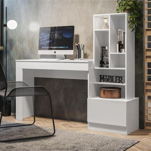 Estante Escrivaninha Lion com 6 Nichos e 1 Gaveta - Branco
