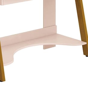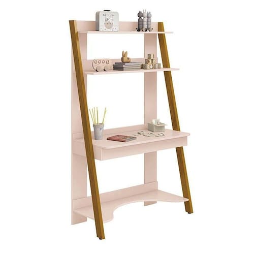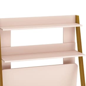 Estante Escrivaninha Simba Rosa Fosco Com Pés Amadeirado - Reller Móveis Rosa Fosco Estante Escrivaninha Simba com Pés Amadeirado - Reller Móveis Baseada na decoração escandinava e minimalista a estante escrivaninha Simba vem para compor o ambiente com um estilo clássico e elegante. A estante escrivaninha é composta por 2 prateleiras superiores, 1 tampo móvel com duas posições de altura e amortecedor, 1 gaveta com divisórias no compartimento, indicado para o uso apoiado ao solo e fixado a parede e pés de apoio em madeira. ESPECIFICAÇÕES: - Estrutura em MDF - Pintura UV - Pés em madeira - 2 Prateleiras superiores - 1 Tampo móvel com duas posições de altura e amortecedor - 1 Gaveta - Divisórias no compartimento da gaveta - Recomenda-se que o produto seja para o uso apoiado ao solo e fixado a parede - Peso suportado: Prateleiras e gaveta até 5kg cada