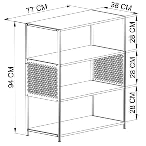 Estante Estilo Industrial 94 Cm Com Tela P1024, conta com estilo industrial que além de atemporal, combina com qualquer tipo de decoração, sinônimo de versatilidade! Tanto sua estrutura em metal, quanto suas prateleiras em MDP, possuem 15 mm de espessura, conta com 03 nichos, o central possui telas laterais e sua base possui ponteiras plásticas, evitando riscos no chão de seu cômodo. É o móvel perfeito para você que busca praticidade ao guardar seus itens, aliado à modernidade de um produto conceitual. Este móvel chegará na sua casa separado em 01 volume.