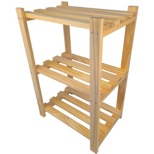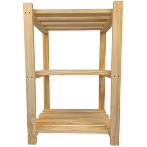 A estante artesanal em madeira de Pinus é a escolha ideal para você que busca um item prático para organizar o seu ambiente além de embelezar todo o lugar com um toque rústico! Nossa prateleira possui 3 andares para você colocar seus livros, sapatos, louças ou o quê preferir. Totalmente fabricada com madeira Pinus de reflorestamento sendo assim um item ecologicamente correto. Além de tudo isso você pode customizar a sua estante envernizando ou pintando ela. A estante aguenta até 30kg.