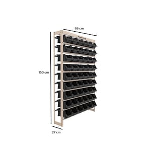 Kit Estante gaveteiro é composto por estante em aço (desmontada) e 54 gavetas pretas n.º 5, possibilita vários tipos de armazenagem. As gavetas são produzidas em polipropileno. A estante tem capacidade total de carga de 160 kg distribuídos entre as gavetas. Ideal para organizar itens como: pequenos objetos, ferragens, peças hidráulicas, parafusos entre outros itens. As gavetas tem espaço destinado onde podem ser coladas etiquetas, para identificar os itens ali acondicionados, o que promoverá o acesso rápido aos itens que deseja, para realizar tarefas de maneira mais ágil e organizada. Altura: 150 Ambiente Principal: Área de Serviço Carga máxima: 160 Composição: Gavetas em polipropileno e estrutura em aço. Comprimento: 27 Cor Predominante: Preto Função: Organizar Gavetas Empilháveis: Sim Instruções de montagem: Verificar manual que acompanha o produto. Itens Inclusos: 1 Estante, Kit Ferragens e Manual de Montagem Largura: 99 Manual de Montagem e Instalação: https://cdn2.madeiramadeira.com.br/atributo/wtec/1059651-manual-93011-54-5-estante-gaveiteiro.pdf Material da Gaveta: Polipropileno Material Principal: Polipropileno Medidas das Gavetas: 54 un. Nº 5 - 11,5 cm (A) x 15 cm (L) x 25,5 cm (P) Necessita Montagem: Sim Origem do Produto: Nacional Peso: 17.56 Possui Gavetas: 54 Possui Portas: Não Possui Prateleiras: Não Possui Rodízio: Não Recomendações de Uso, Manutenção e Limpeza: Manter em ambientes que não tenham exposiçao direta a luz solar. Tipo de Organizador: Estante Gaveteiro