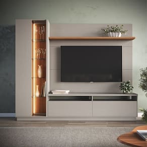 Um toque de sofisticação para os momentos em família ou para receber os amigos. Acabamento da Porta: Finish Foil Acabamento da Prateleira: Finish Foil Acompanha Lâmpada: 01 Ambiente Principal: Sala de Estar codigo_ean: 7900288251053 Complexidade da Montagem: Média: pode ser montado por mais de uma pessoa e/ou necessite de maior conhecimento para montagem Cor: Fumê/Freijó Cor do Produto: Fumê/Freijó Cor Flex: não Cor Interna: Fumê/Freijó Escala de Brilho: Fosco Escala de Brilho da Porta: Fosco Escala de Brilho da Prateleira: Fosco Espessura do Painel: 15 cm Espessura do Tampo: 30 mm Espessura do Vidro: 4 mm Fixação na Parede: Sim Ideal para TVs até (Polegadas): 65 Informações Complementares: Iluminação de Led Itens Inclusos: 1 Estante Home e Kit Ferragem Linha ou Coleção: LINHA Manual de Montagem e Instalação: https://cdn2.madeiramadeira.com.br/atributo/quidita-moveis/3259903-5382-175951552211.pdf Marca: Quiditá Material da Porta: MDP Material da Prateleira: MDP Material dos Pés: MDP Material Principal: MDP Montagem Flex: não Necessita Montagem: Sim Origem do Produto: Nacional Peso: 74 kg Peso Máximo por Prateleira: 5 kg Possui Espelho: Não Possui iluminação: Sim Possui Nichos: 02 Possui Passa Cabos: Sim Possui Pés: Rodapé Possui Portas: 03 Possui Prateleiras: 07 Possui Rodízio: Não Possui Vidro: Sim Recomendações de Uso, Manutenção e Limpeza: Deve ser feita com pano macio e seco ou levemente umedecido com água e sabão neutro. Não devem ser utilizados abrasivos como palha de aço e objetos cortantes. Sapatas Niveladoras: Não Sistema de Montagem: Parafusos,cavilhas e minifix. Suporta Até (kg): 40 kg Suporte de TV Universal Incluso: Não Tipo de Puxador da Porta: Não possui