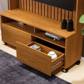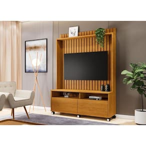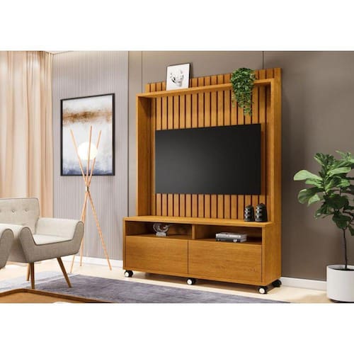 Além disso por ser um home com painel não é necessário a perfuração da parede para a instalação, e possui rodízios que facilitam a movimentação do móvel no dia a dia.