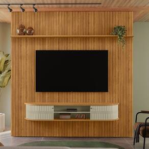 A Estante Home Frisada para TV até 75 Polegadas 2 Portas New Bugatti Madetec combina elegância e funcionalidade em um design sofisticado, ideal para modernizar a sala de estar. Fixado na parede, conta com painel em MDF frisado, portas flexíveis e detalhes curvos no tampo e na base, garantindo um visual exclusivo. Produzido com chapas de MDP e MDF de diferentes espessuras, oferece resistência e durabilidade, suportando TVs de até 75 polegadas. Inspirado no design europeu, destaca-se pelos puxadores de poliestireno em bronze e acabamento refinado, sendo uma solução prática e estilosa para qualquer ambiente.