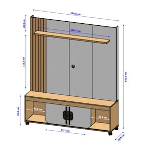 Características: Estruturado em MDP e MDF 2 Portas de Correr Puxador em MDF Acabamento pintura com verniz Poliéster UV Prateleira superior 25mm Suporta TV até 75 Polegadas Com detalhes frisado Pés com rodízios Prateleira suporta de 8 á 10kg