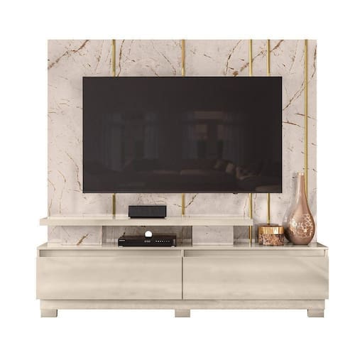 A sua sala vai ficar linda com a Estante Home Genuine! Um móvel super moderno, espaçoso e bem destribuido. É composto por duas gavetas, ambas com corrediças telescópicas, seus perfis são com acabamento em Hot Stamping, e os Painéis em MDP 15 e 40mm uma prateleira para eletronicos, e comporta uma TV de até 75 polegadas. As cores são perfeitas, deixando o ambiente sofisticado e sem exageiros. Esse modelo é finalizado com pés comuns. Compre já a sua.