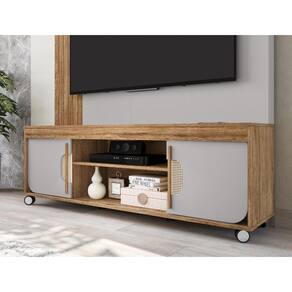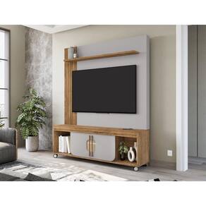 Produto: Estante Home Maragogi Rodízios frontais com trava e calotas cromadas; Portas de correr; Acabamento lateral fresado; Prateleira superior de 25mm; Tela plástica remetente ao ratan natural Cor: Cinamomo/Off-White Altura (cm): 191 Largura (cm): 160 Profundidade (cm): 38,5 Peso (Kg): 54,43 Material e Espessura: Estruturado em MDP 15mm e Prateleira superior 25mm Acabamento: Semi-Brilho Quantidade de Portas: 2 Quantidade de Gavetas: 0 Número de Nichos: 2 Externo / 1 Interno Quantidade de Prateleiras: 2 Tipo de Pés: Rodízio Peso Suportado: 60 kg Medidas do Espaço para TV: 110 x 160 Ideal da TV's de: 65 pol Necessita Montagem: Sim Instruções e Cuidados: Recomenda-se limpar o produto com flanela ou pano macio seco, não utilizar produtos abrasivos, desengordurantes, álcool ou solvente. Mantê-lo em lugar livre de umidade e/ou exposição direta ao sol. Garantia: 3 Meses Conteúdo da Embalagem: 1 Home e 1 Manual de montagem