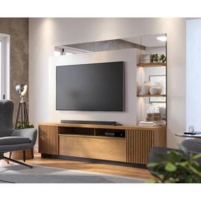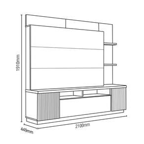 Produto: Estante Home Niteroi 2,10m para TV de 70" Freijo/Off White/Preto Fosco - Colibri A Estante Home Niterói suporta TVs de até 70 polegadas fixadas no Painel. O ripado artesanal nas portas traz sofisticação e modernidade. A parede em espelho amplia o produto e forma um elegante contraste entre o brilhante e o fosco, assim como suas prateleiras iluminadas com réguas de led. Conta também com uma porta basculante central com pistão a gás e puxador metálico dourado. Neste produto temos uma enorme riqueza de materiais expressos com delicadeza e sofisticação, ele é perfeito para decorar a sua casa. 02 portas de giro com detalhamento ripado; porta basculante com pistão a gás 80n; espelhos e luminárias (canaletas de led). Largura (cm): 210 Profundidade (cm): 44,9 Altura (cm): 191 Espaco para Tv - Largura (cm): 170,2 - Altura: 114 Revestimento do Produto: Acabamento em Pintura UV Escala de Brilho: Fosco | Brilho Revestimento da Borda: Fitas de borda em papel Estrutura do Produto: Produzido em MDP 25mm, MDP 15mm, MDP 12mm, MDF 15mm, HDF 3mm. Instruções/Cuidados: Limpar utilizando apenas pano umedecido com água, nunca utilizar abrasivos ou esponjas de aço. Necessita Montagem: Sim Garantia: 90 dias Material Puxador: Metálico dourado Quantidade de Portas: 3 - Tipo: Giro | Basculante - Dobradica: Metálica | Pistão a gás Quantidade de Gavetas: 0 - Corrediça: N/A Quantidade de Nichos: 2 Quantidade de Prateleiras: 2 - Peso Suportado: 1Kg Quantidade de Pés: 0 - Material: N/A - Altura: N/A Possui Rodízios: Não Peso Total Suportado: 50Kg (no painel) Ideal para TV'S (Polegadas): 70" Acompanha Suporte para TV: Não Acompanha Lâmpadas: Sim - Tipo de Lâmpada: Régua de led - Voltagem: Bivolt Necessita Fixação na Parede: Não