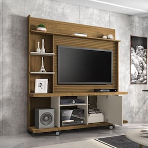 A Estante Home Taurus é ideal para sua sala! Uma estante robusta que possui um designer moderno e inovador, diferente dos demais no mercado, ele renovará totalmente o ambiente de sua sala tornando ainda mais atrativa. Ele possui 5 rodízios (os frontais com trava) que facilitam o seu deslocamento caso necessário, principalmente na hora da faxina. Possui um amplo tampo com espessura de 40mm, nichos, e várias prateleiras que são ideais para acomodar os mais variados tipos de objetos de decoração, bem como aparelhos eletrônicos que complemente sua TV. Acabamento da Porta: Pintura Acabamento da Prateleira: Pintura UV Acabamento dos Pés: Cromado Altura dos Pés: 5 cm Ambiente Principal: Sala de Estar Complexidade da Montagem: Média: pode ser montado por mais de uma pessoa e/ou necessite de maior conhecimento para montagem Cor: Cinamomo/Off White/Ripado Cor do Produto: Cinamomo/Off White/Ripado Cor Flex: Cor Interna: Cinamomo Escala de Brilho: Semi-Brilho Escala de Brilho da Porta: Semi-Brilho Escala de Brilho da Prateleira: Semi-Brilho Ideal para TVs até (Polegadas): 47 Itens Inclusos: 1 Estante e Manual de Montagem. Linha ou Coleção: Taurus Manual de Montagem e Instalação: https://cdn2.madeiramadeira.com.br/tecnico/moveis-bechara/208956-home-taurus-manual-de-montagem-ed001-dez2014-pp01a04.pdf Material da Porta: MDP Material da Prateleira: MDP Material do Puxador da Porta: Alumínio Material dos Pés: Plástico Material Principal: MDP Montagem Flex: Não Necessita Montagem: Sim Origem do Produto: Nacional Peso: 55,39 kg Peso Máximo por Prateleira: 5 kg Possui Espelho: Não Possui iluminação: Não Possui Nichos: 02 Possui Pés: 05 Possui Portas: 01 Possui Prateleiras: 04 Possui Rodízio: Sim Possui Vidro: Não Recomendações de Uso, Manutenção e Limpeza: Recomenda-se limpar o produto com flanela ou pano macio seco, não utilizar produtos abrasivos, desengordurantes, álcool ou solvente. Mantê-lo em lugar livre de umidade e/ou exposição direta ao sol. Rodízio com Trava: Sim Sapatas Niveladoras: Sim Sistema de Montagem: Parafusos, Minifix e Cavilhas. Suporta Até (kg): 50 kg Tipo de Porta: Bater Tipo de Puxador da Porta: Embutido