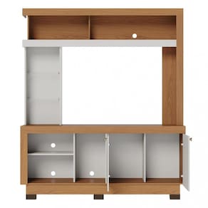 Características: Estrutura em MDP 2 Portas Prateleiras de vidro Pés de plástico Suporta TVs até 50 Polegadas